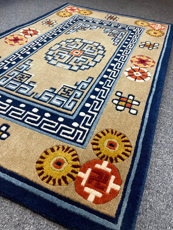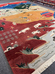 In Nepal, we work with Tibetan refugees to produce the finest quality hand-spun, hand-carded, hand-combed, vegetable-dyed wool, silk, and silk/wool combination rugs. Tibetan rugs are known for their large patterns and plush feel.