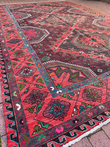 Caucasian Sumaks are double-stitched, hand-embroidered flat-woven rugs known for their unique vegetable dyes and bold geometric patterns. They are some of the most labor-intensive rugs and are made of wool. The sumaks in our curated collection are all antique or semi-antique pieces in incredible condition. Most are narrow area rugs, perfect for historic homes such as DC row homes or New York brownstones.