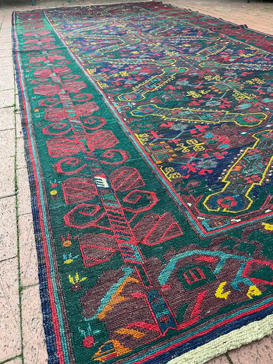 Caucasian Sumaks are double-stitched, hand-embroidered flat-woven rugs known for their unique vegetable dyes and bold geometric patterns. They are some of the most labor-intensive rugs and are made of wool. The sumaks in our curated collection are all antique or semi-antique pieces in incredible condition. Most are narrow area rugs, perfect for historic homes such as DC row homes or New York brownstones.