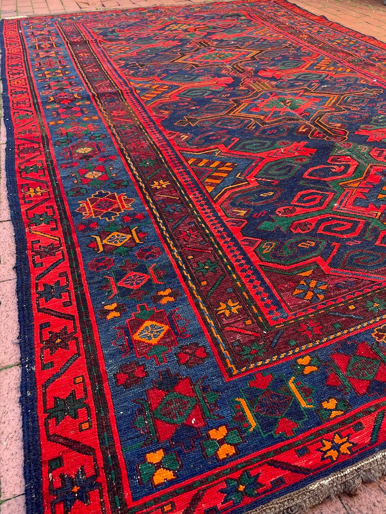 Caucasian Sumaks are double-stitched, hand-embroidered flat-woven rugs known for their unique vegetable dyes and bold geometric patterns. They are some of the most labor-intensive rugs and are made of wool. The sumaks in our curated collection are all antique or semi-antique pieces in incredible condition. Most are narrow area rugs, perfect for historic homes such as DC row homes or New York brownstones.