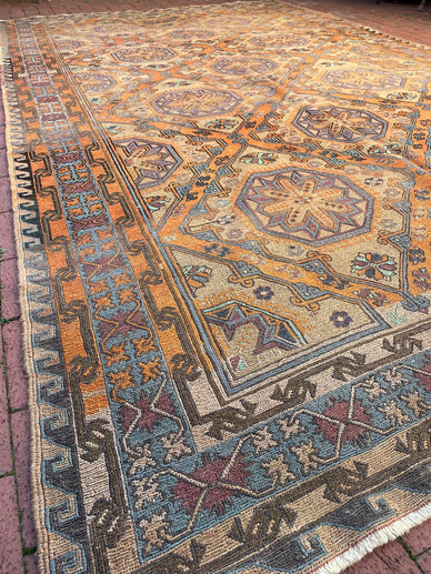 Caucasian Sumaks are double-stitched, hand-embroidered flat-woven rugs known for their unique vegetable dyes and bold geometric patterns. They are some of the most labor-intensive rugs and are made of wool. The sumaks in our curated collection are all antique or semi-antique pieces in incredible condition. Most are narrow area rugs, perfect for historic homes such as DC row homes or New York brownstones.