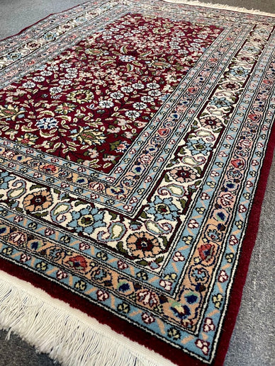 A very finely woven vintage Turkish Hereke, all handwoven with 100% organic vegetable-dyed wool. This is a pile-knotted rug. Measurements do not include the fringe length. This piece would be great in any living space.