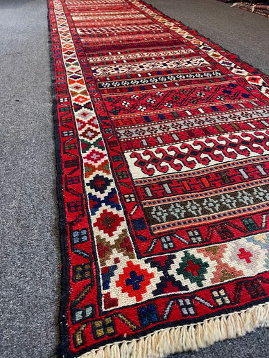 A very finely woven vintage Rau Rau Sercen Sumak flatwoven rug, all handwoven with 100% organic vegetable-dyed wool. This is a flat-woven sumak, a double-stitched, hand-embroidered rug (triple-woven). Measurements do not include the fringe length. This piece would be great in any living space.