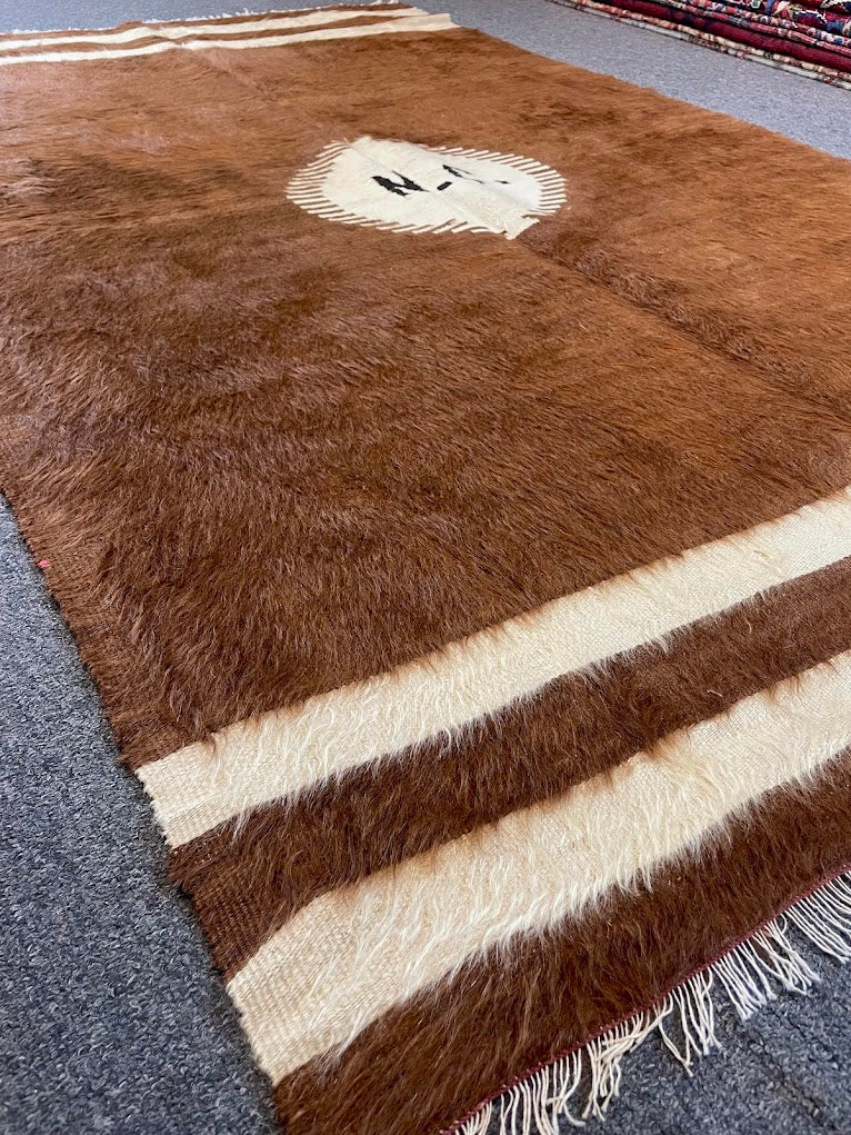 A finely woven vintage Siirt kilim/blanket rug from Turkey, all handwoven with 100% organic Mohair. The center of the rug has the initials of the weaver woven into it. This is a flat-woven rug with no pile, but has two sides, one being soft and fluffy due to the materials. Measurements do not include the fringe length. This piece would be great in any living space.